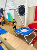 Première séance de sport pour les GS à la halle aux sports dans la salle de gymnastique.