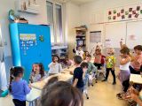Dans le cadre du thème de l’année, la maternelle de la Banquise a eu le plaisir d’accueillir un glacier : Laurent Calas, du Jardin des Glaces.